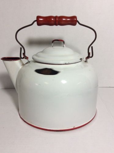 Title (ebay affiliate link): LoOld Vintage Red & White Kitchen Enamelware Teapot Primitive Farmhouse Decor
