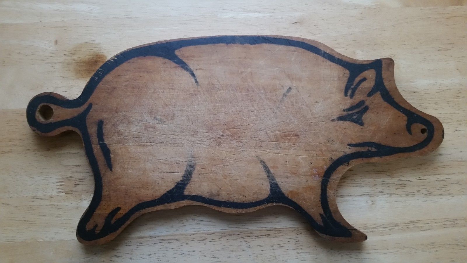 Title (ebay affiliate link): VINTAGE PRIMITIVE WOODEN PIG CUTTING BOARD - NICE FORM