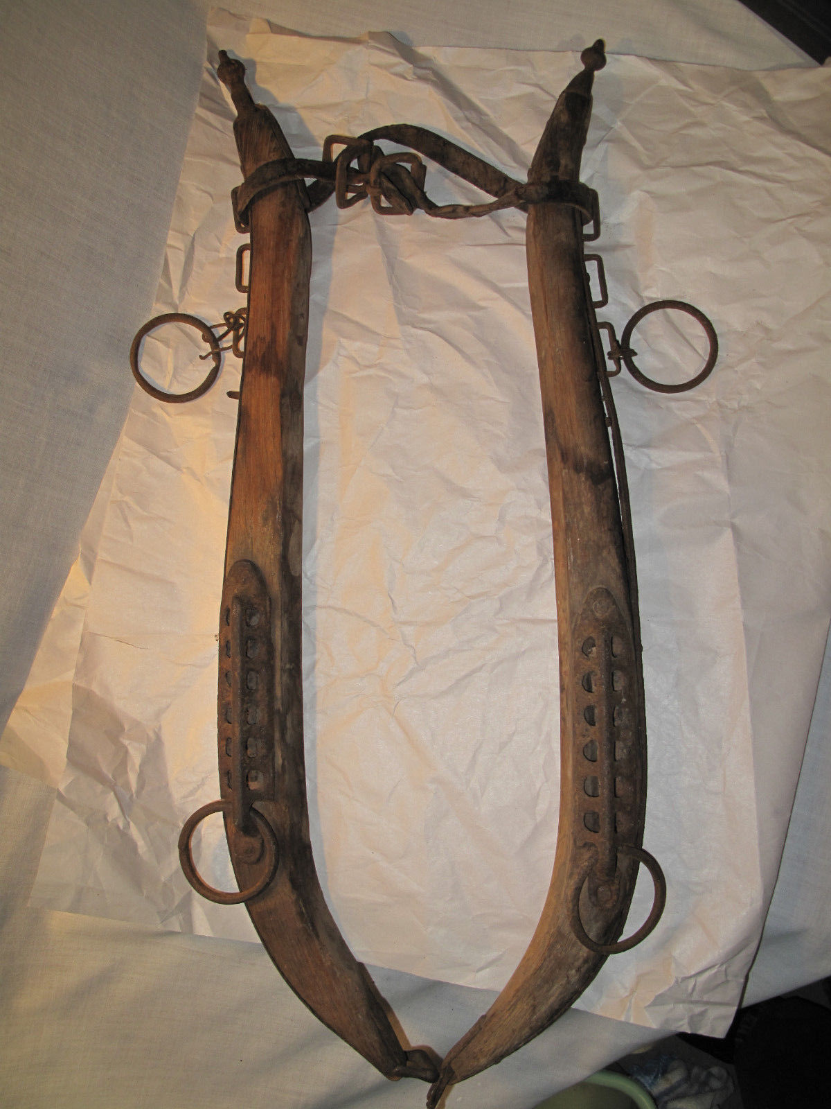 Title (ebay affiliate link): Antique Harness Collar Yoke Tree Hand-Forged Wood & Cast Iron Horse Mule Collar
