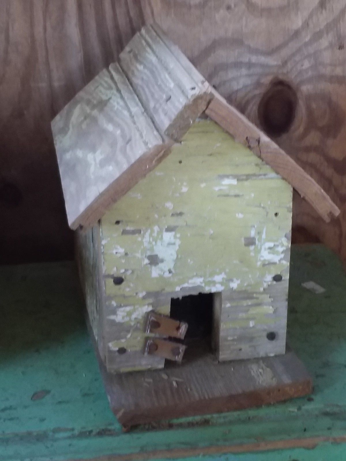 Title (ebay affiliate link): PRIMITIVE Antique green Chippy paint Birdhouse Cabin decoration - farmhouse