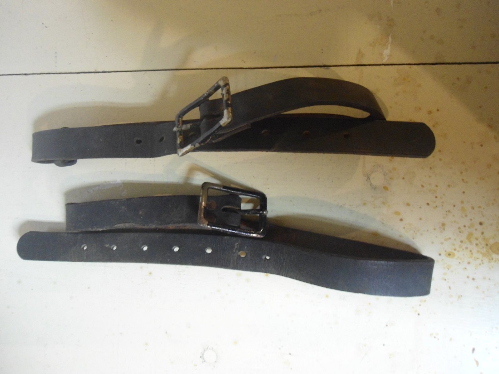 Vintage Pierce Arrow leather straps for spare tires. Original pliable parts.