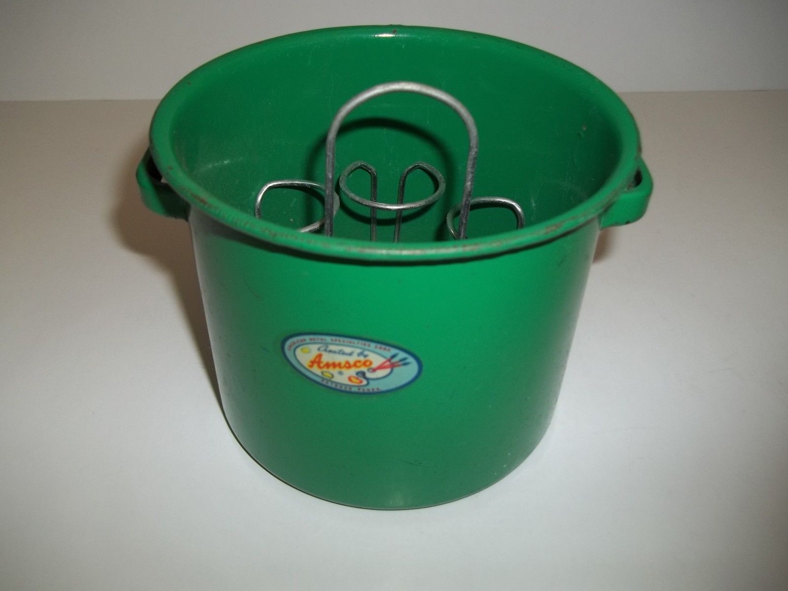 Title (ebay affiliate link): Vintage Child''s Green Kitchen Enamel Amsco Toy Pot for Baby Bottles Wire Basket