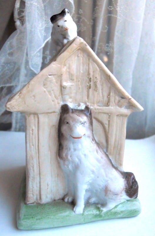 Title (ebay affiliate link): RARE! Antique Victorian Bisque DOG HOUSE Cat on Roof INCENSE Scent DISPENSER