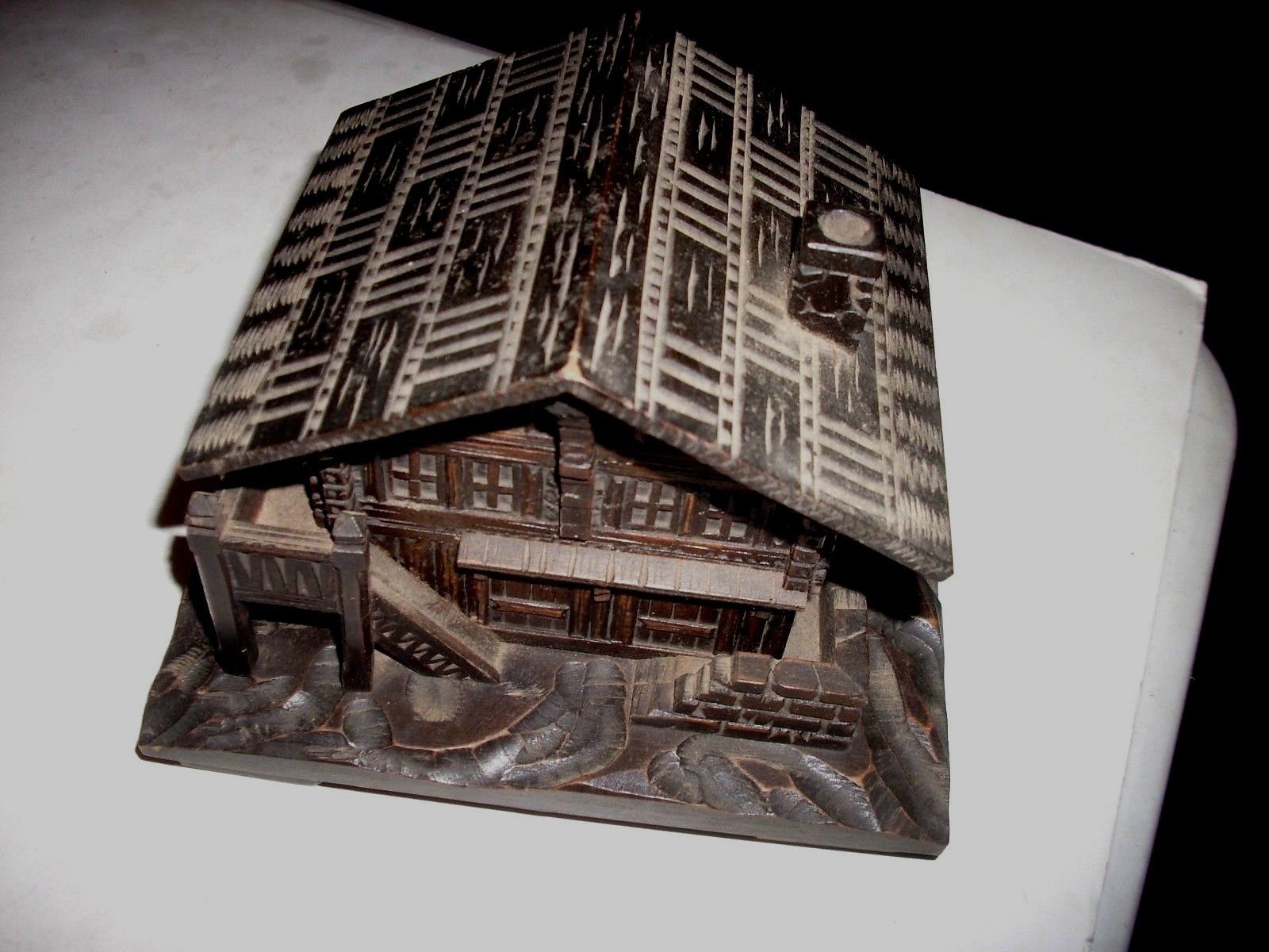 Title (ebay affiliate link): Wood Chip Carved Cabin Chalet Jewelry-Trinket Humidor Box Black Forest Style