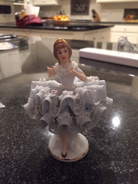 ANTIQUE DRESDEN LACE PORCELAIN FIGURINE VOLKSTEDT GERMANY