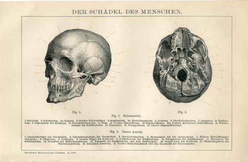 1895 HUMAN SKULL ANATOMY Antique Engraving Print