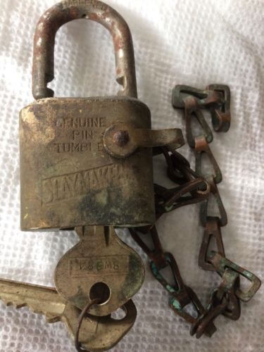 vintage slaymaker padlock,Keys,ordinance Department USA. Chain. Brass. Works.