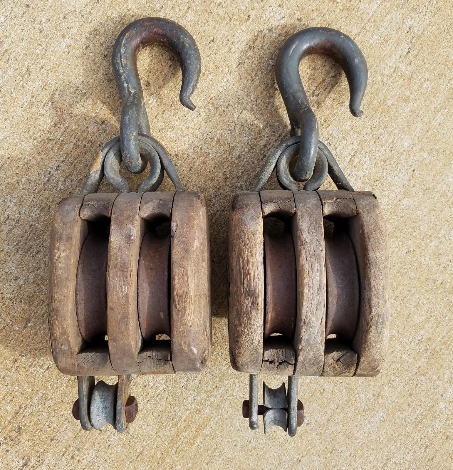 Title (ebay affiliate link): Vintage Antique Wood Wooden Pulley Set of 2 Farm Marine Ranch Steampunk