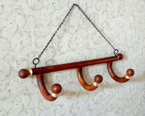 Title (ebay affiliate link): Antique Bentwood Oak And Brass 3 Hook 19" Wall Mount Hat Rack