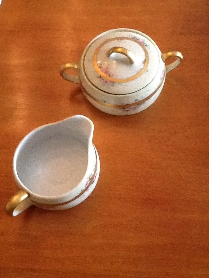 Antique HEINRICH & CO SELB BAVARIA sugar & creamer roses & gold