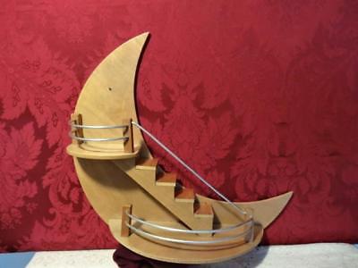 VINTAGE ART DECO WOODEN " STAIRWAY TO THE STARS " CRESCENT MOON RETRO WALL SHELF