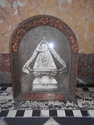 Title (ebay affiliate link): Antique French Photo Print Virgin Mary Madonna hand carved wood framed standing