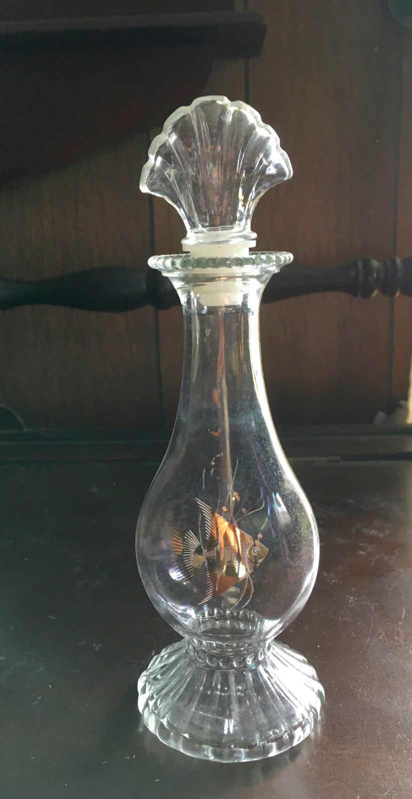 Avon "Golden Fish" and shell design Bath oil Decanter 1978