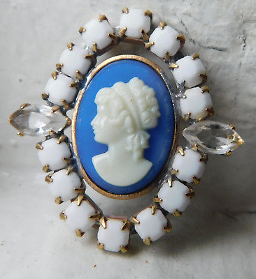 VINTAGE STYLE CZECH RHINESTONE BUTTON~WEDGEWOOD CAMEO CAB~MILK GLASS~G6