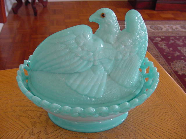 Title (ebay affiliate link): Vintage Westmoreland Blue Milk Glass Covered Dish W/Eagle & Babies