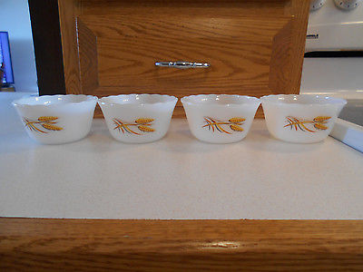 Title (ebay affiliate link): 4 VINTAGE "FIRE KING" 424 GOLDEN WHEAT MILK GLASS 6OZ CUSTARD BOWLS-EXCELLENT