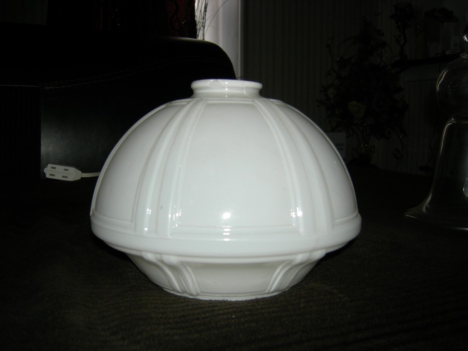 Title (ebay affiliate link): Shade/Dome, Deco style, white milk glass old. 2 1/8" outside fitter. Gorgeous!