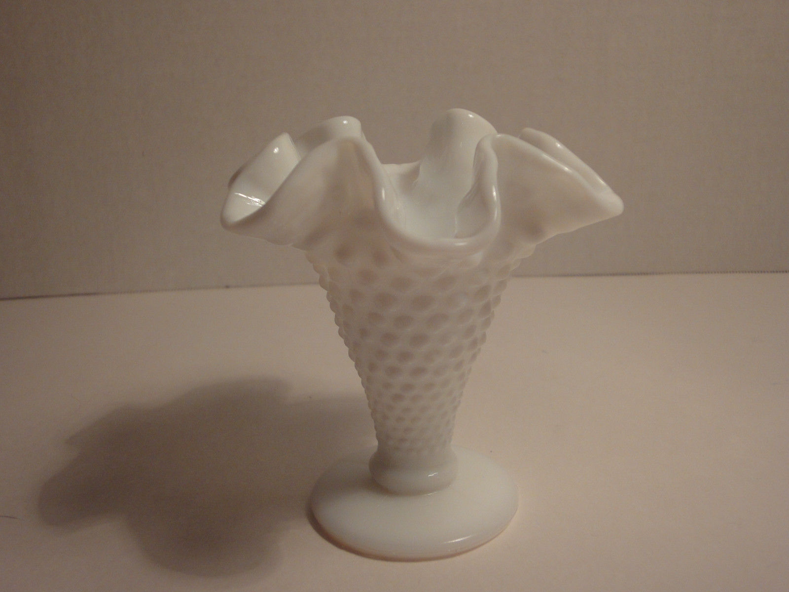Title (ebay affiliate link): VINTAGE 3 3/4" HOBNAIL DESIGN RUFFLED EDGE WHITE MILK GLASS VASE - GRANDMA''S
