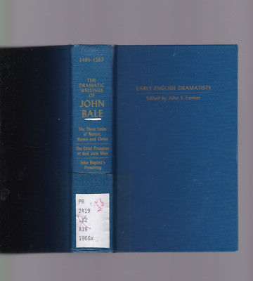 Title (ebay affiliate link): The Dramatic Writings of John Bale, Bishop of Ossory, ed. John S. Farmer HC 1966