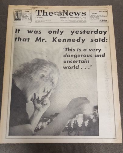 Title (ebay affiliate link): The Washington Daily News Nov. 23, 1963 JFK Assassination Tribute Edition Ex Con
