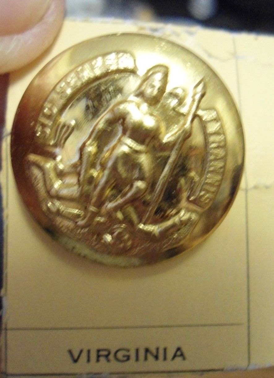 GOLD TONE METAL NEW VIRGINIA STATE BUTTON SUPERIOR QUALITY BUTTON CO. FREE SHIP