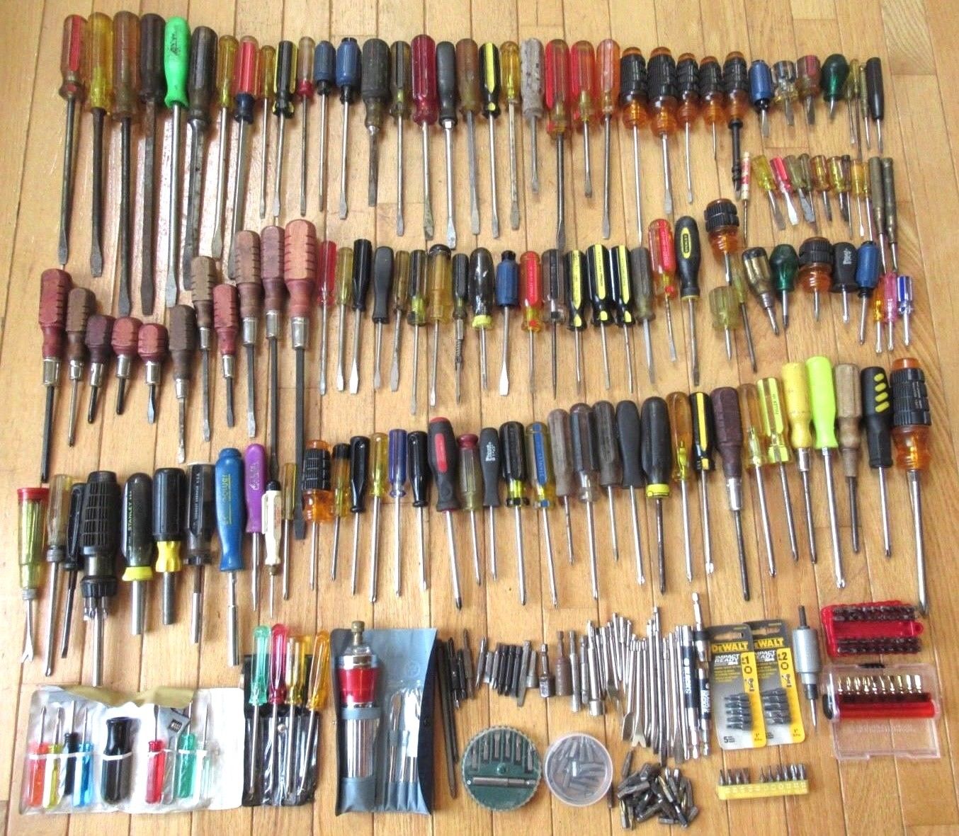 Title (ebay affiliate link): Large Lot of (100) Plus Screwdrivers, Awls, Bits, Bit Sets & More