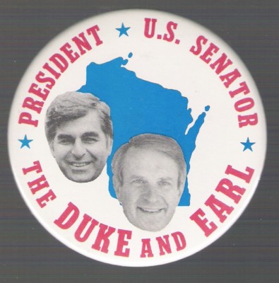 Michael Dukakis presidential campaign button, unusual