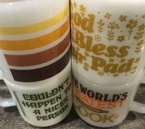 Title (ebay affiliate link): Lot Of 4 Glasbake White Milk Glass Stackable Coffee Cup Mug 1970''s