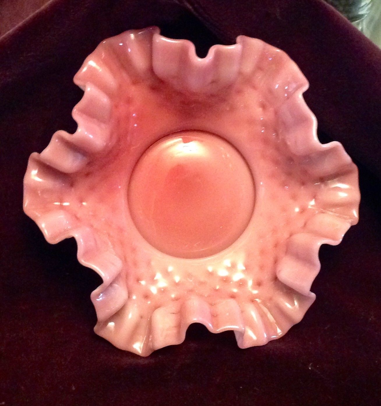 Fenton Hobnail Bowl Milk Glass exterior, Pink Interior