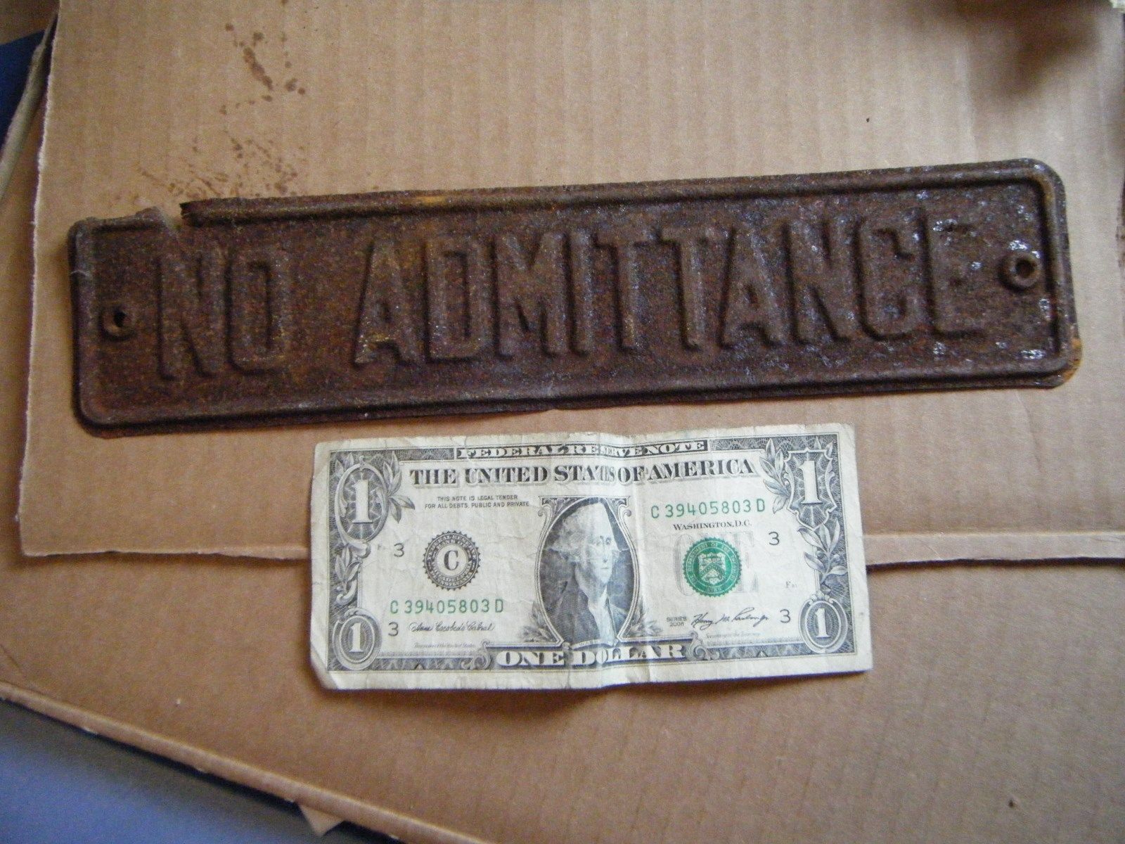 OLD RUSTY Vintage Factory Plant Machine NO ADMITTANCE Metal Sign Patina