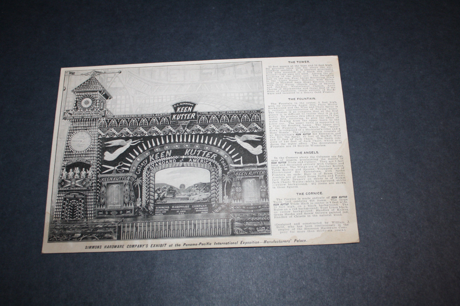 1915 ADVERT Keen Kutter Knives PANAMA-PACIFIC EXPO 7"X10" CARD, SIMMONS HARDWARE