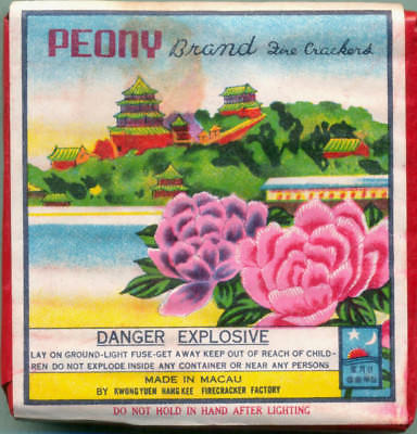 PEONY BRAND KWONG YUEN HANG KEE FIRECRACKER LABEL MACAU