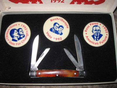 George Bush Bill Clinton Ross Perot Knife & Buttons