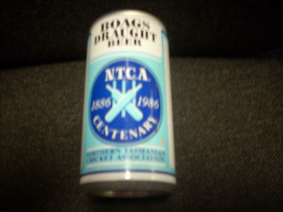 BOAGS LAGER BEER CAN ALUM NTCA CENTENARY CRICKET 1986