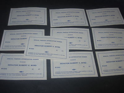 Title (ebay affiliate link): 1960'S LOT OF 10 SENATOR ROBERT BYRD $1000 PAC TICKETS