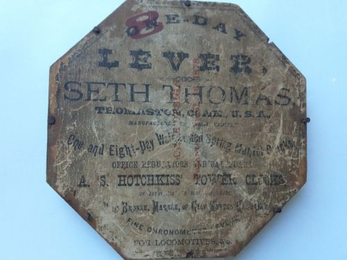 Antique Seth Thomas Clock Back 8 One Day for Locomotives Circa 1878 RARE