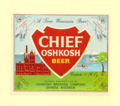 Label for CHIEF OSHKOSH BEER, Wisconsin