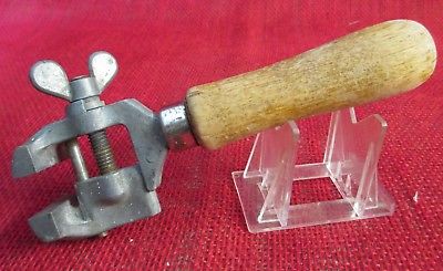 Title (ebay affiliate link): Vintage Unmarked Hand Tool, Hand Vise?, Wire Puller?, Wood Handle, Well Made