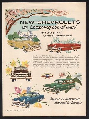 Original 1954 Canadian Chevrolet ad Bel Air Convertible Coupe Sedan Wagon
