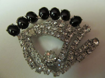 Vintage Rhinestone & Milk Glass Brooch ICE & JET