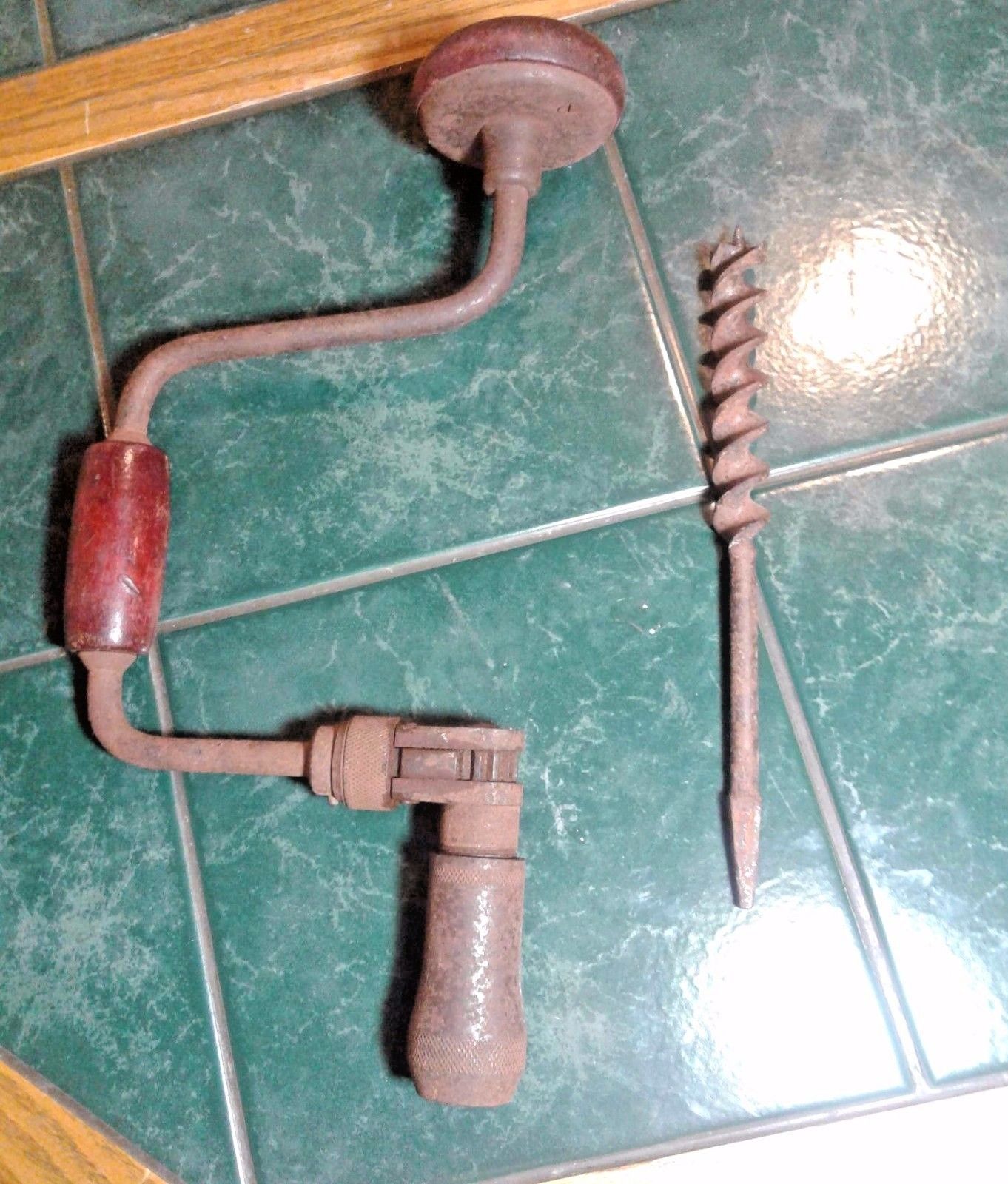 Title (ebay affiliate link): Vintage Hand Drill Bit Brace Ratcheting 14" with Russell Jennings bit 9 1/2 "