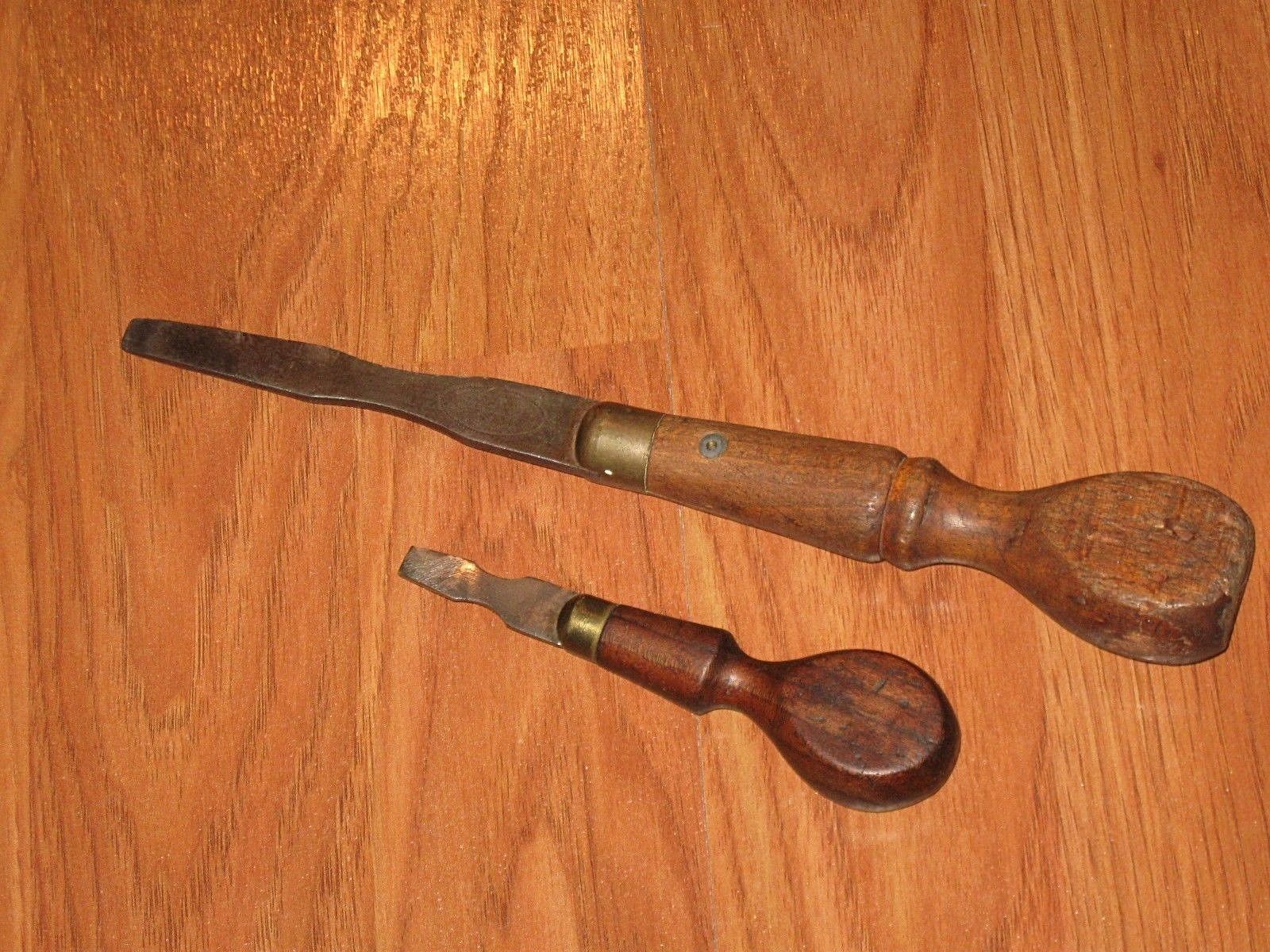 Title (ebay affiliate link): 2 Antique Early Wood Handle Screwdrivers Gunsmith Cabinet Makers Tool