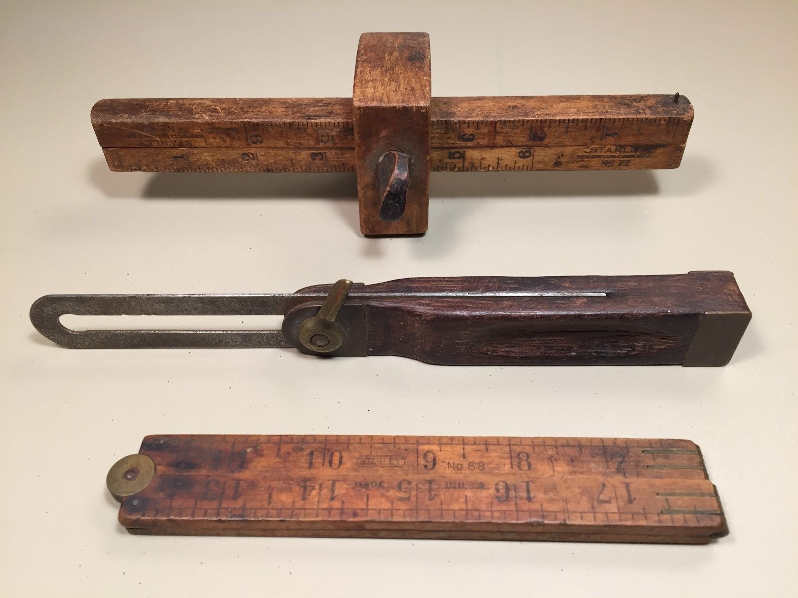 Title (ebay affiliate link): Vintage Stanley Woodworking Tools Nos. 25 68 72 Square Level Scribe New Britain