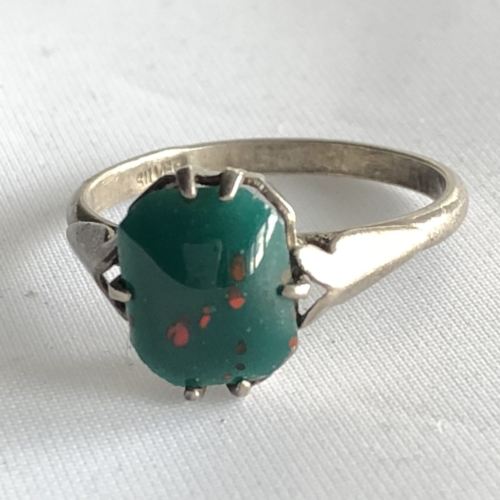 Title (ebay affiliate link): Antique Art Deco Silver Ring with Bloodstone Solitaire Green Stone - Size O