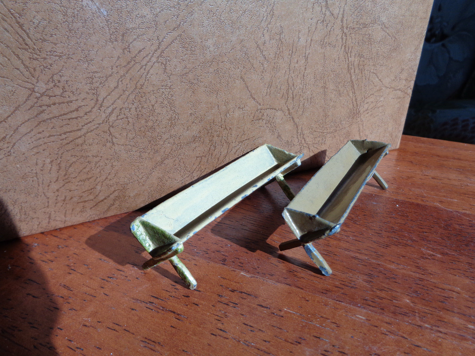 vintage Britains # 528 Farm animal lot of 2 Large food troughs farmer lead, RL