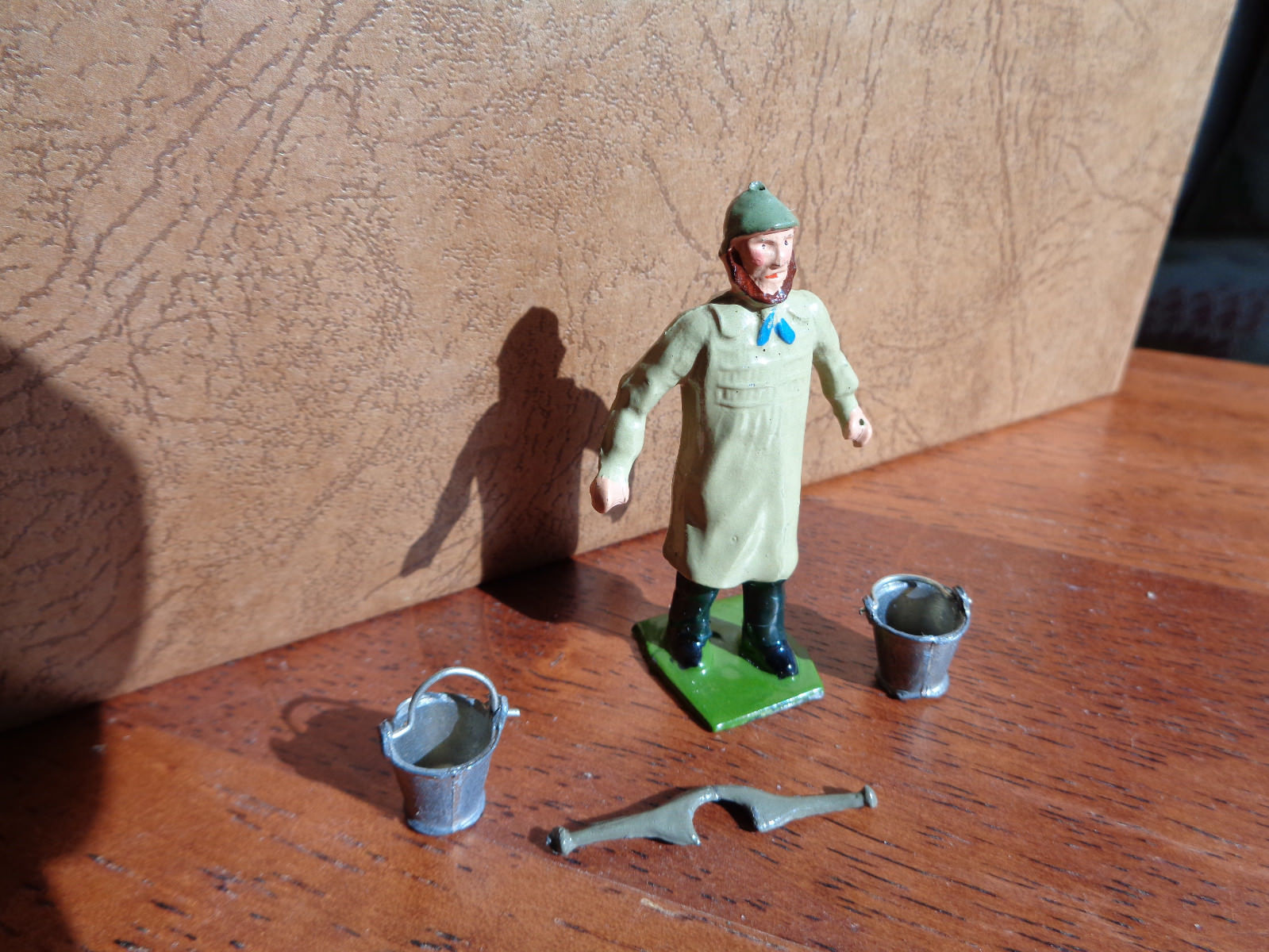 vintage Britains # 591 Farm animal Dairyman with yoke & pails, farmer lead, RL