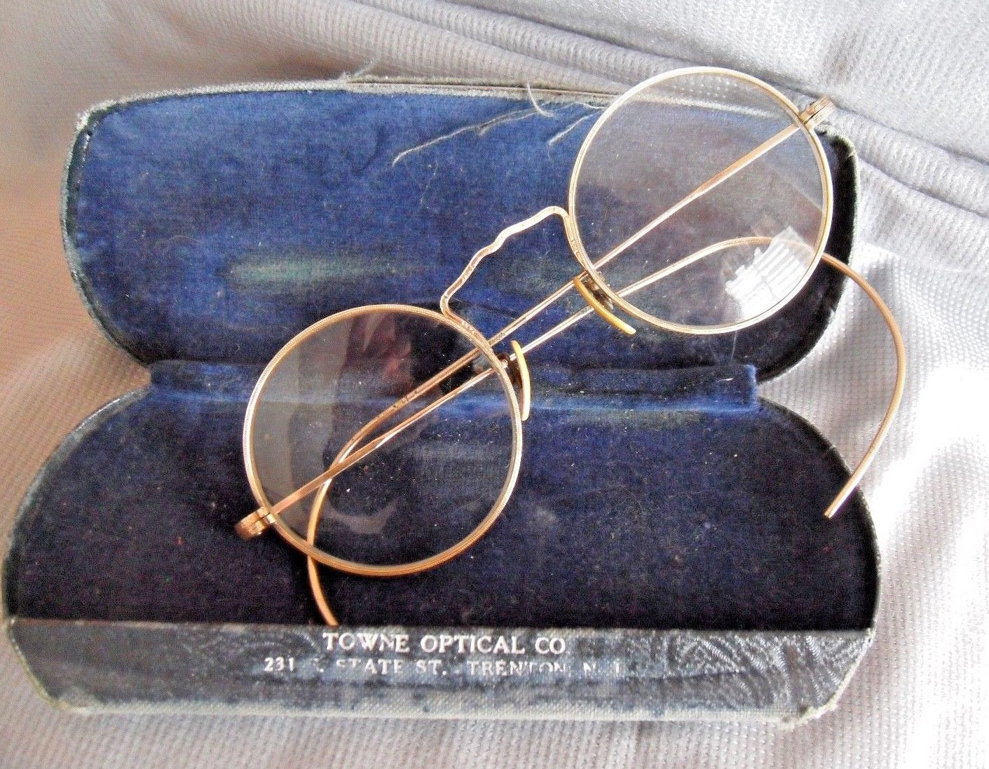 Title (ebay affiliate link): Antique Gold Round Wire Rim Eye Glasses with Case, Embossed, Towne, Trenton, NJ