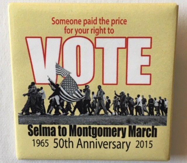Title (ebay affiliate link): 2 1/4" by 2 1/4" Vote Selma to Montgomery 50th Anniversary March, 2015 Cause Pin