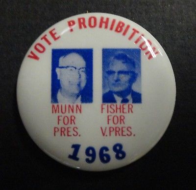 Title (ebay affiliate link): 1968 VOTE PROHIBITION, Munn & Fisher Campaign Pin