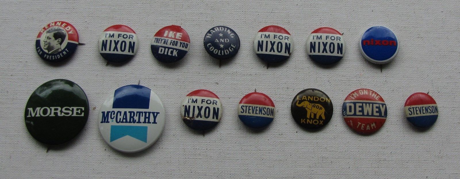 Lot of 14 Vintage Pinback Political Buttons, Ike, Nixon, Dewey, Landon, Harding